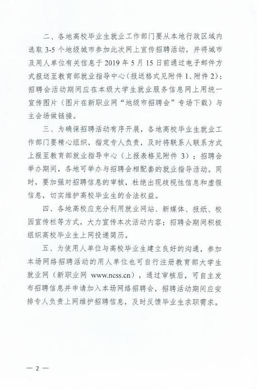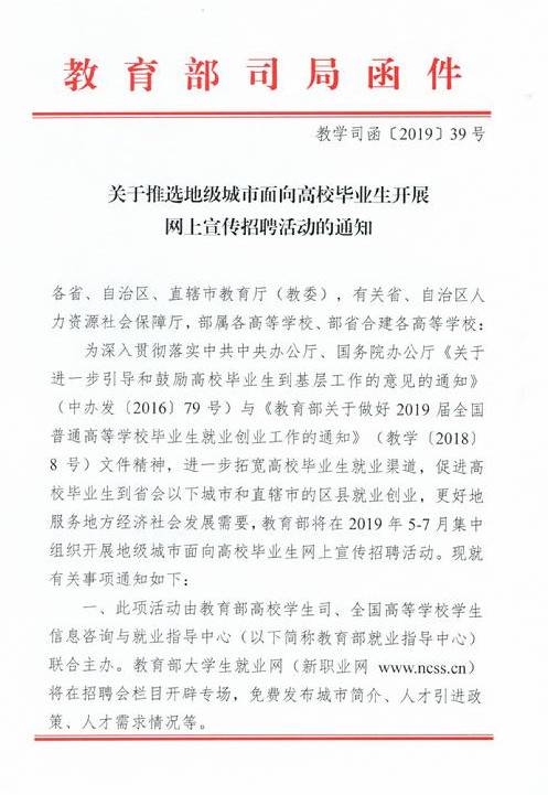 关于推选地级城市面向高校毕业生开展网上宣传招聘活动的通知