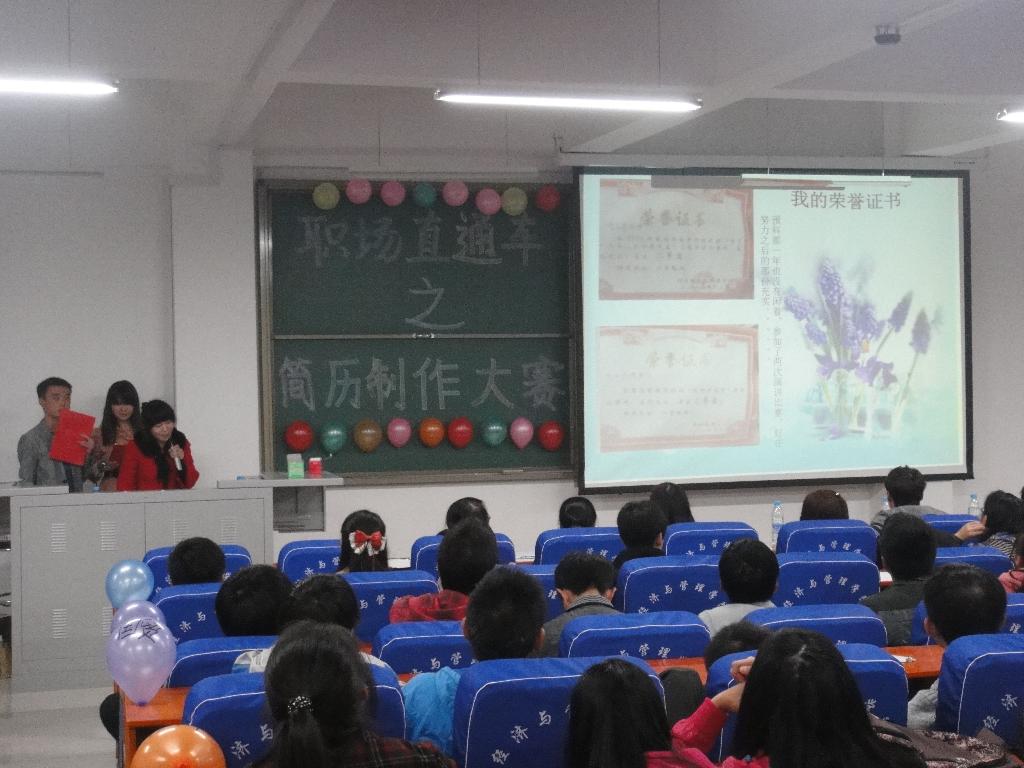 为培养学生的综合素质,提高就业竞争力,熟练掌握简历制作技巧,10月29日晚,经济与管理学院在我校科学校区经管楼211举办了职场直通车之“简历制作大赛”。