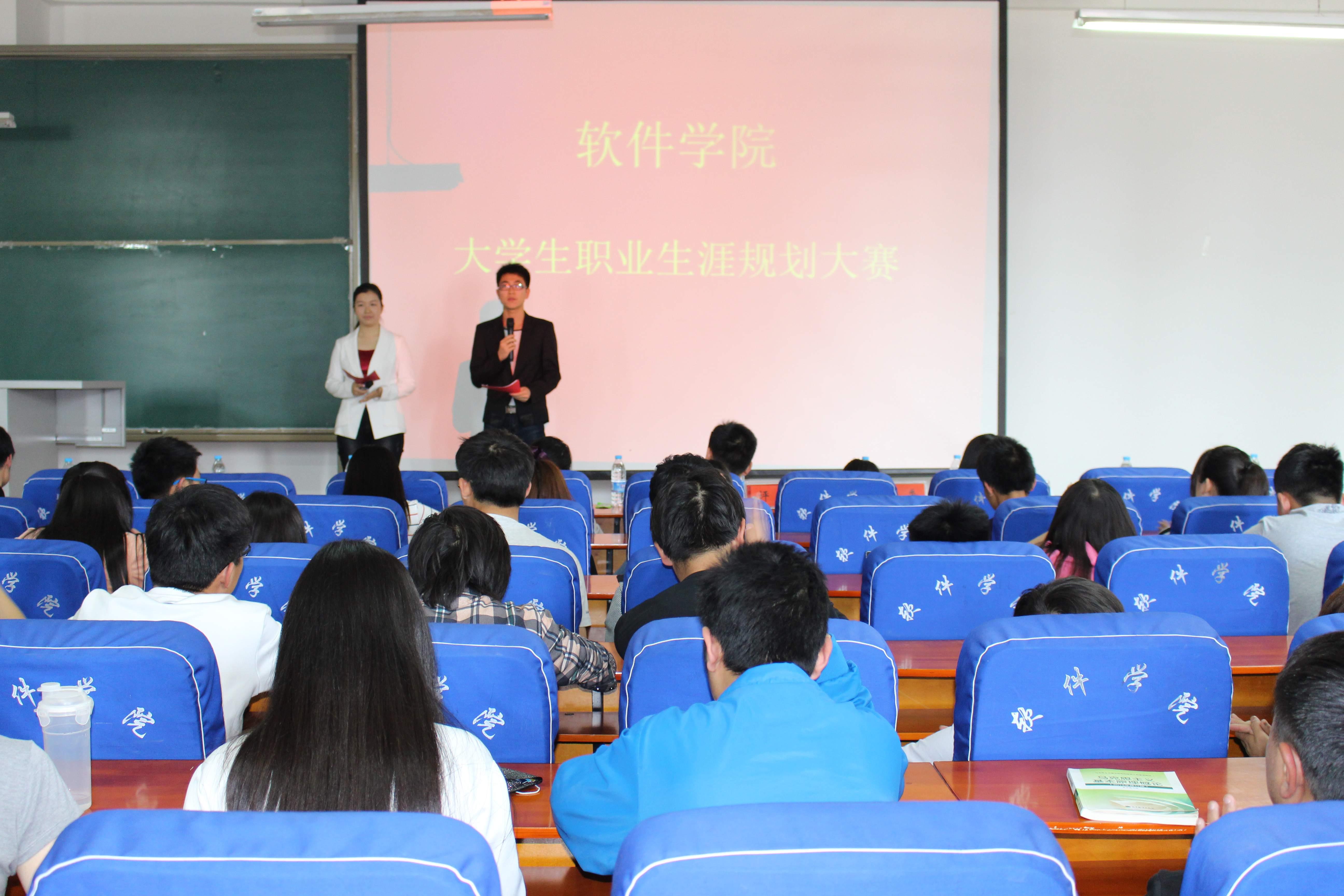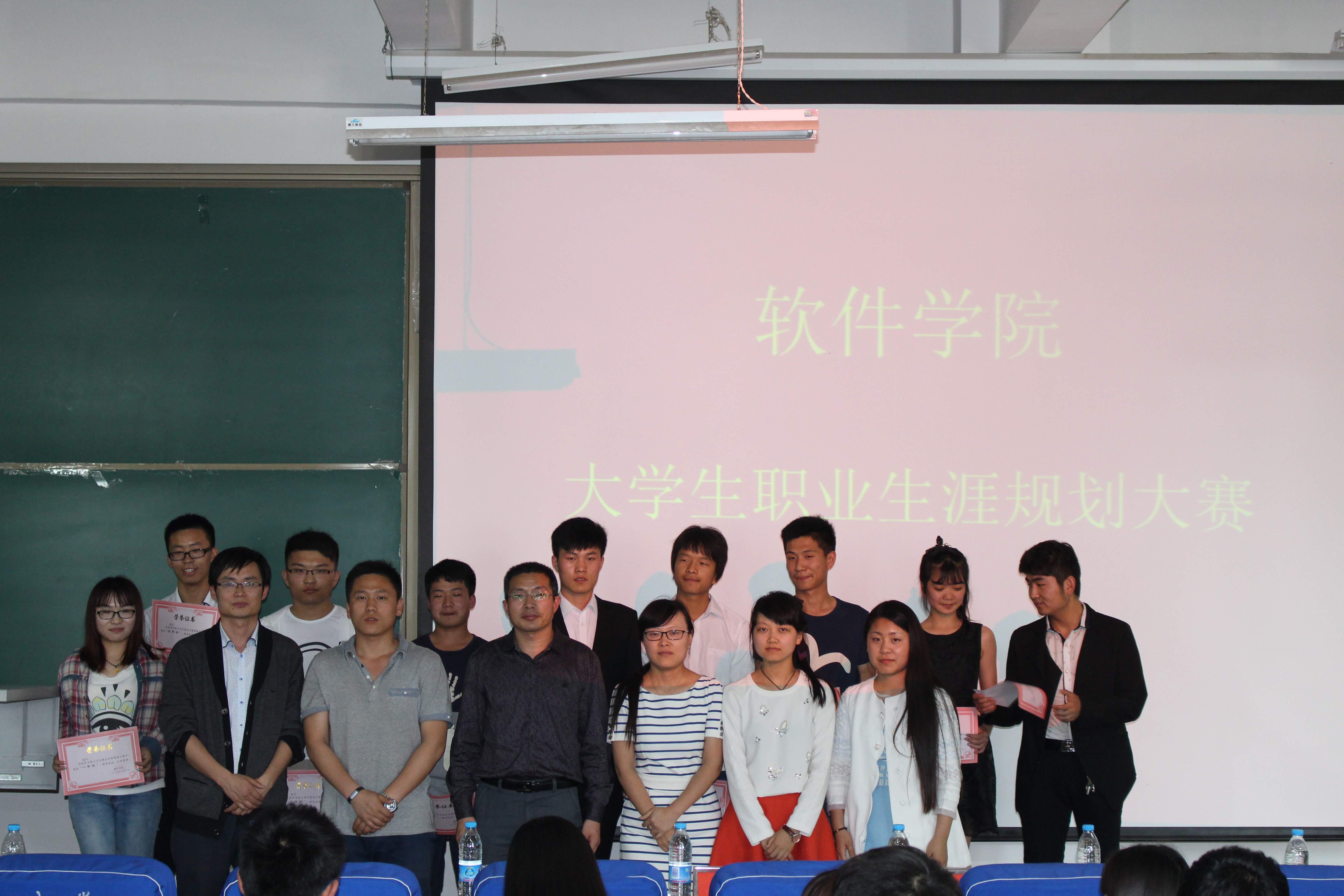 为了帮助学生更好地认识自己、了解社会人才需求状况,帮助他们更好地规划自己的大学生涯和职业生涯,5月8日下午,软件学院在软件楼209举行大学生职业生涯规划大赛。我院党总支副书记武丰龙和全体辅导员老师出席大赛并担任评委, 12级、13级、14级各班同学参加了此次比赛活动。
