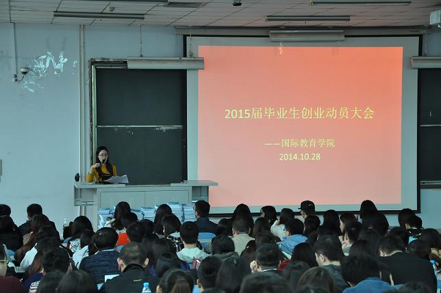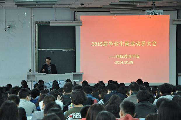 2014年10月28日中午,国际教育学院在教三楼302召开2015届毕业生就业、创业动员大会。国际教育学院党总支副书记闫福丰、负责就业的老师、毕业班辅导员以及全体毕业生参加了此次大会。