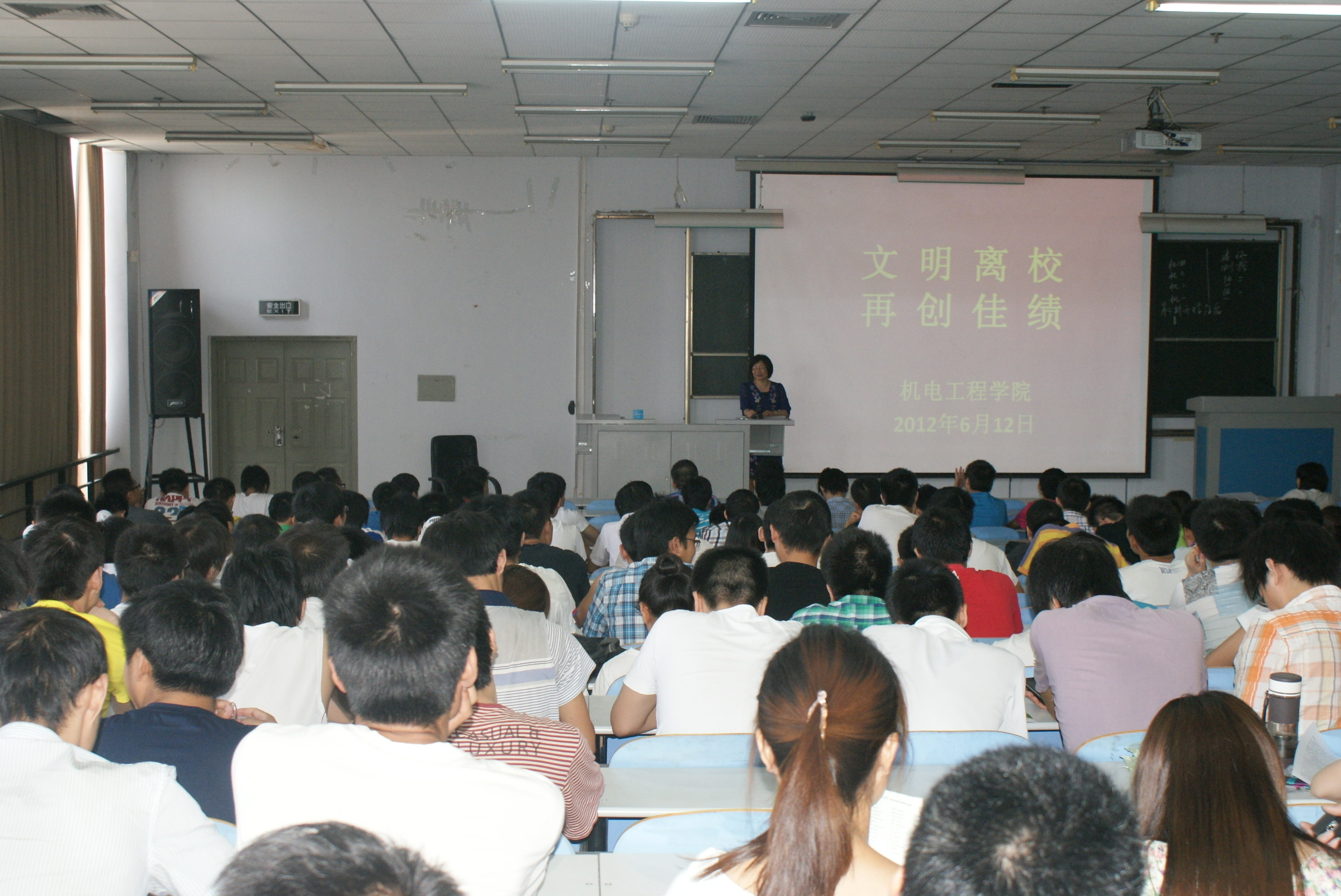 2012年6月12日上午10点,机电工程学院在教三楼302召开2012届全体毕业生大会,院党总支副书记邵建敏、全体毕业班辅导员、负责就业工作的老师以及2012届全体研究生及本科毕业生参加了会议。
