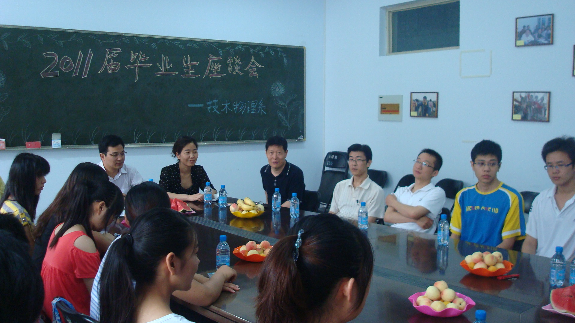 6月14日上午10点,技术物理系2011届毕业生座谈会在东一楼301会议室举行,系班子成员、专业教师代表、全体辅导员老师和2011届毕业生代表参加了此次座谈会。