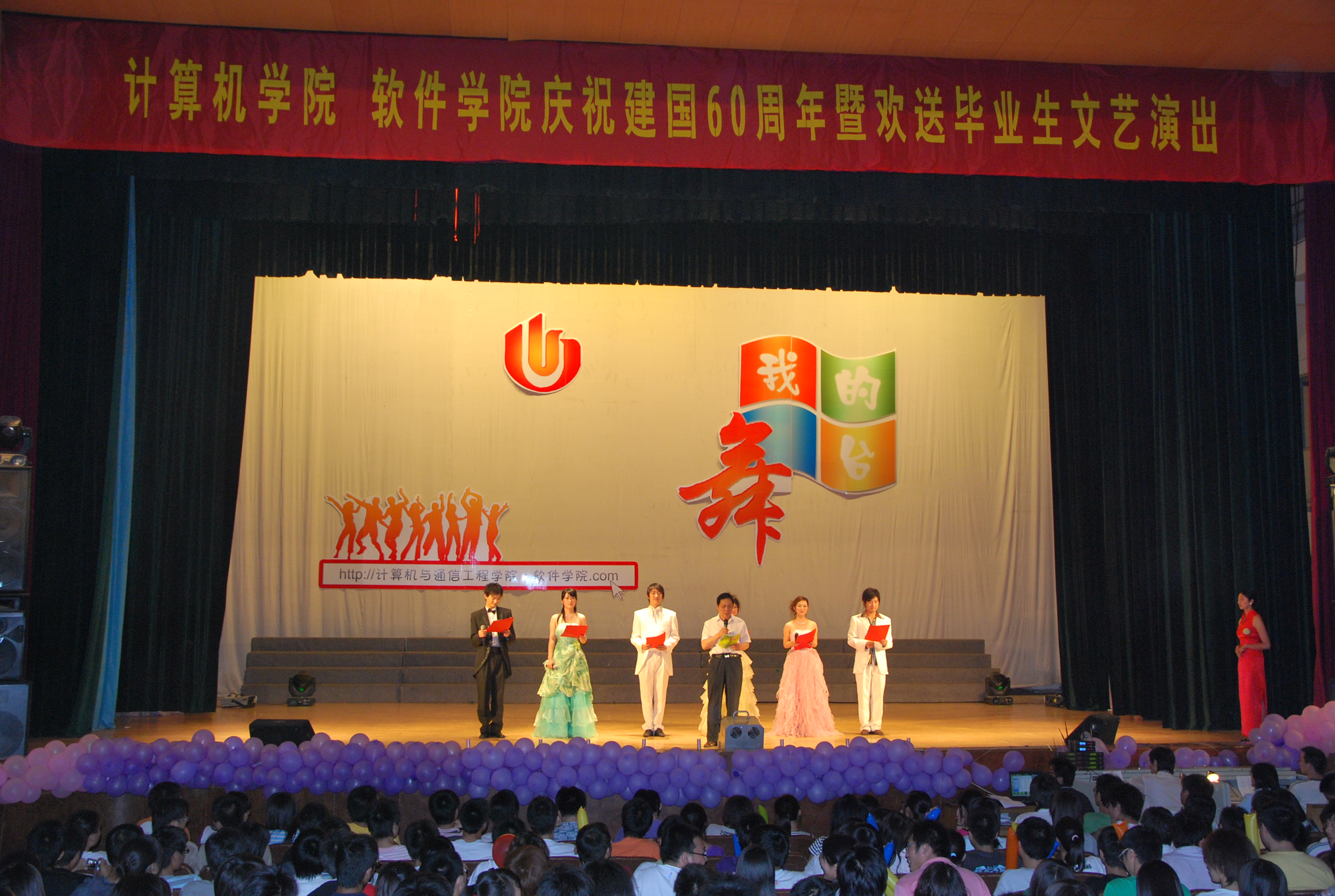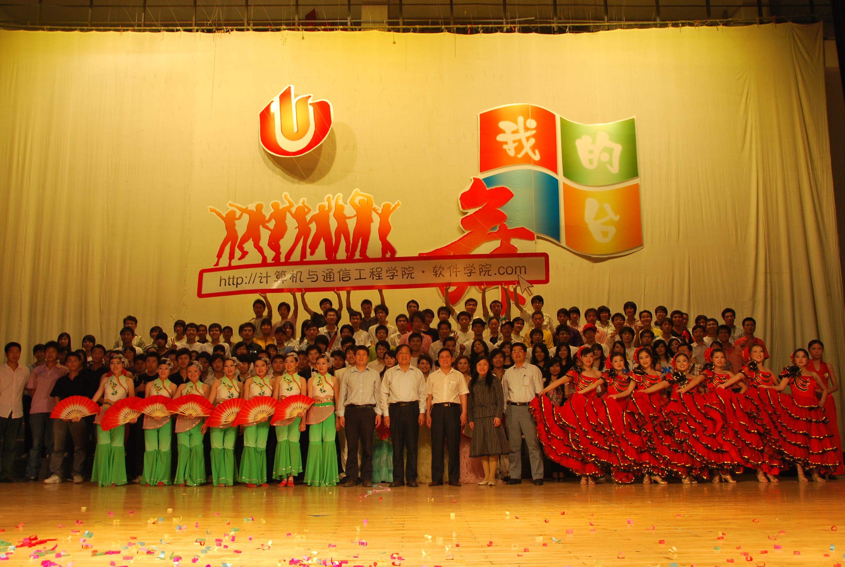 5月25日晚7:30,计算机与通信工程学院、软件学院在校礼堂成功举办“庆祝建国六十周年暨欢送毕业生”文艺晚会,用一场歌舞盛宴庆祝建国六十周年,同时也为09届毕业生送上一份华美的告别。计算机与通信工程学院(软件学院)党政领导、系(中心)主任、部分教职工、各年级学生代表及毕业班同学们观看了本场演出,会场座无虚席。