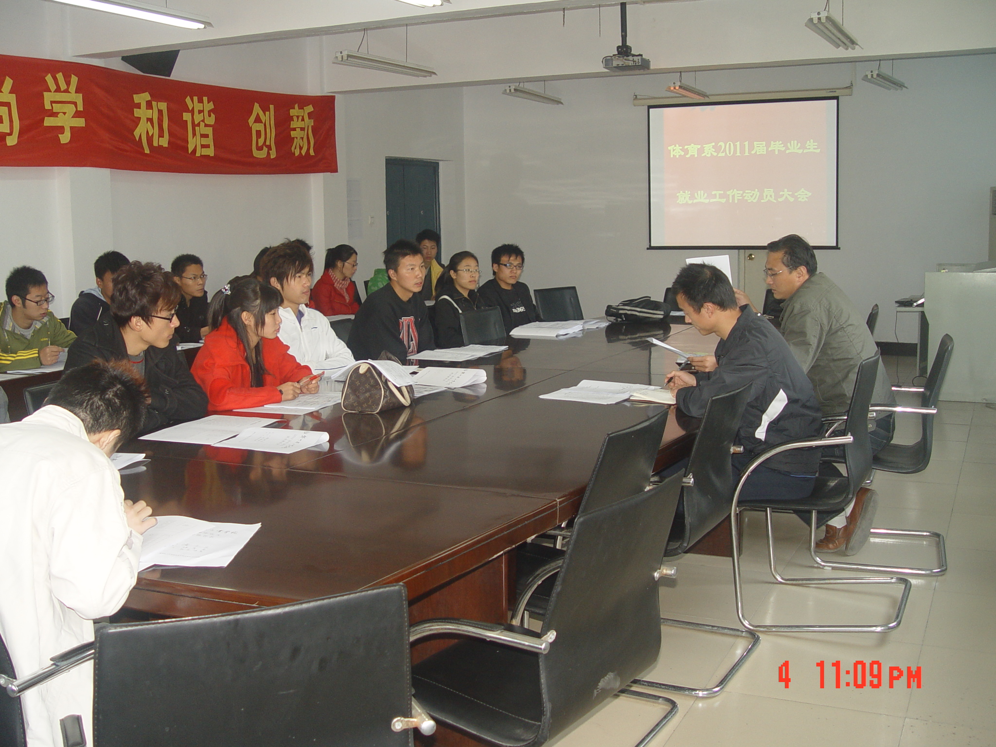 2010年11月5日上午,体育系2011届毕业生就业工作动员会在体育馆三楼会议室顺利召开。体育系有关领导、辅导员老师以及首届毕业生参加了此次大会。