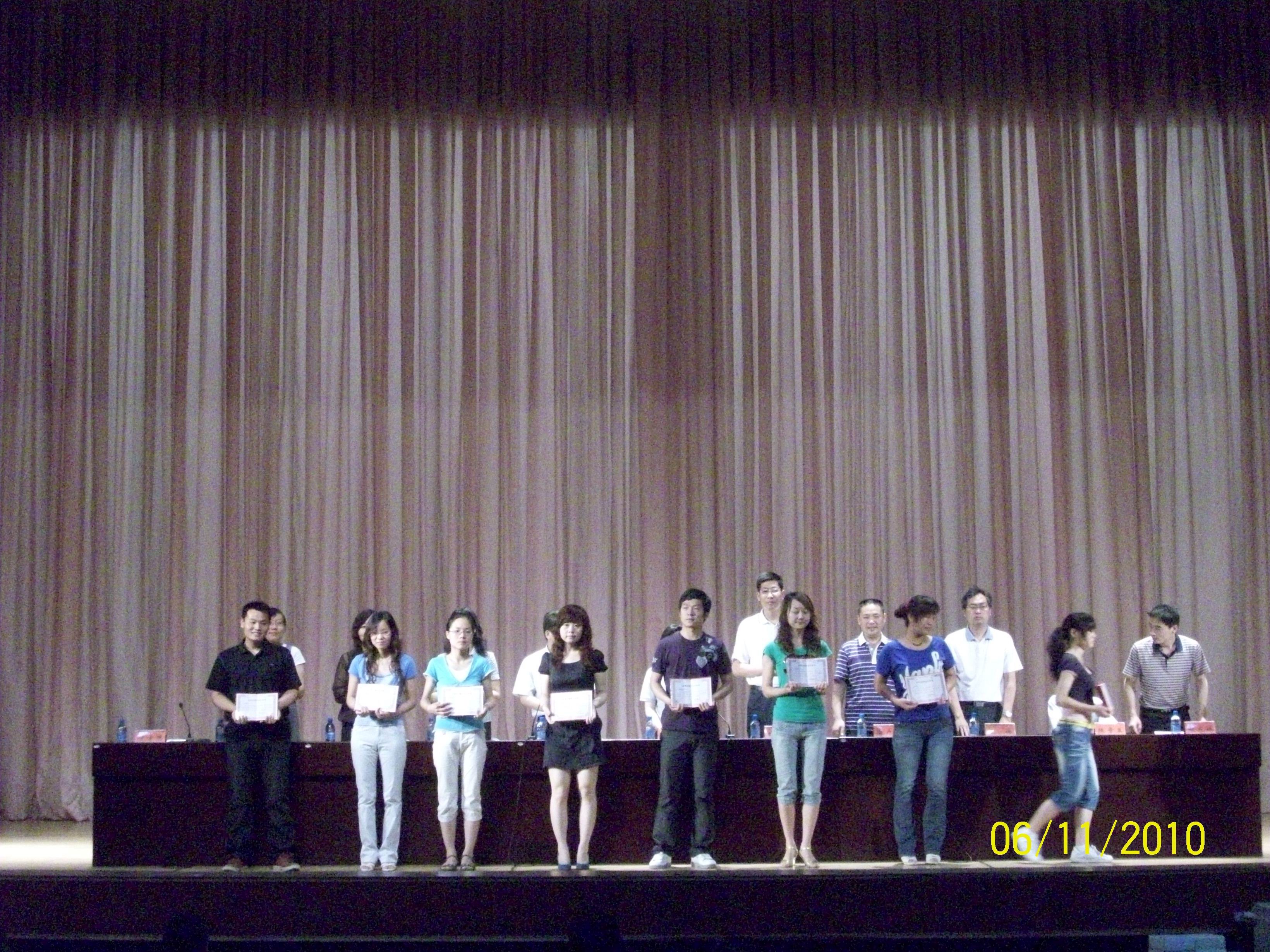 毕业典礼在庄严的国歌声中开幕。周广亮副院长宣读了《关于表彰2010届优秀毕业生的决定》和《关于表彰经济与管理学院2010届优秀毕业论文获得者的决定》,刘珂副院长宣读了《关于表彰2010届“十佳毕业生”的决定》,分团委书记陈章美宣读了《关于表彰2009年度国家奖学金、国家励志奖学金获得者的决定》。出席毕业典礼的领导和教师为获奖毕业生颁发了荣誉证书。