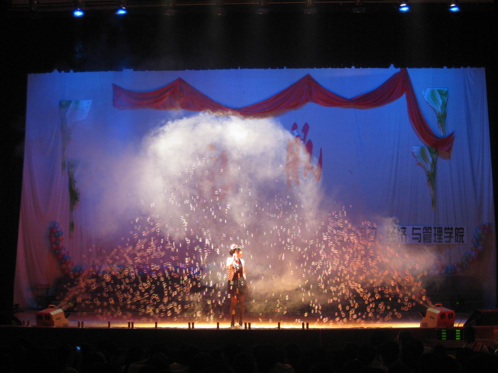 晚会首先在充满民族风情的舞蹈《七月火把节》中拉开帷幕。优美的歌声,深情的朗诵,狂热的舞蹈,都流露出毕业生对母校的依依惜别之情。教师代表演唱的歌曲《明天会更好》寄语了对毕业生美好祝福;诗朗诵《我们毕业了》表达了毕业生对母校的眷恋和感激之情;姚少华、李卓杰两位老师表演的歌舞《Nobody》和师生共同演绎的服装表演《青春风采》使台下成了欢腾的海洋。随后,动感十足的街舞、幽默风趣的小品、滑稽搞笑的双簧、充满异域风情的印度舞把晚会一次次推向高潮。最后晚会在毕业生代表演唱的《我相信》歌声中圆满落下帷幕。