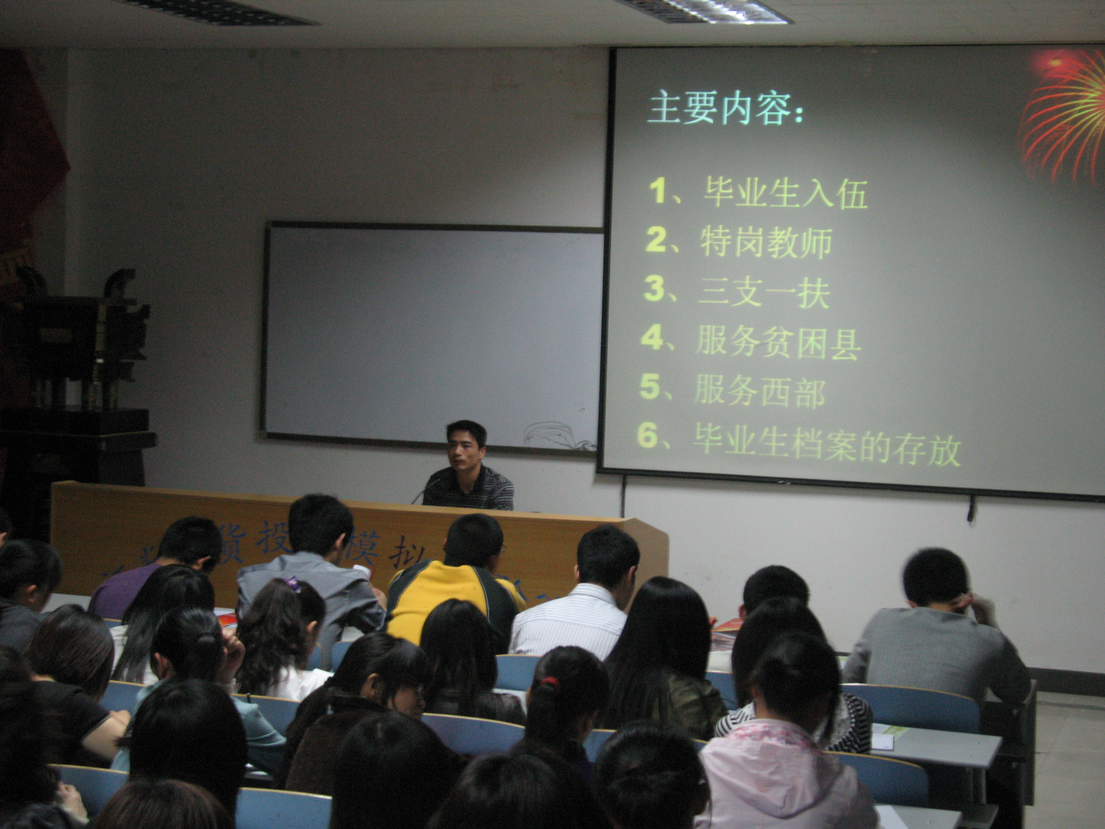 最后由具体负责就业工作的张东娇老师就毕业生入伍、三支一扶、服务贫困县、西部计划等政策向学生做了宣传;对毕业生离校前就业手续的办理,人事代理有关问题做了说明,按照已经签署协议的同学、考研的同学、未签署就业协议的同学等具体情况分别作了详细的讲解,对学生提出的疑问逐一解答。本次会议的召开对提高毕业生就业质量,做好毕业生安全有序、文明离校起到了积极地促进作用。