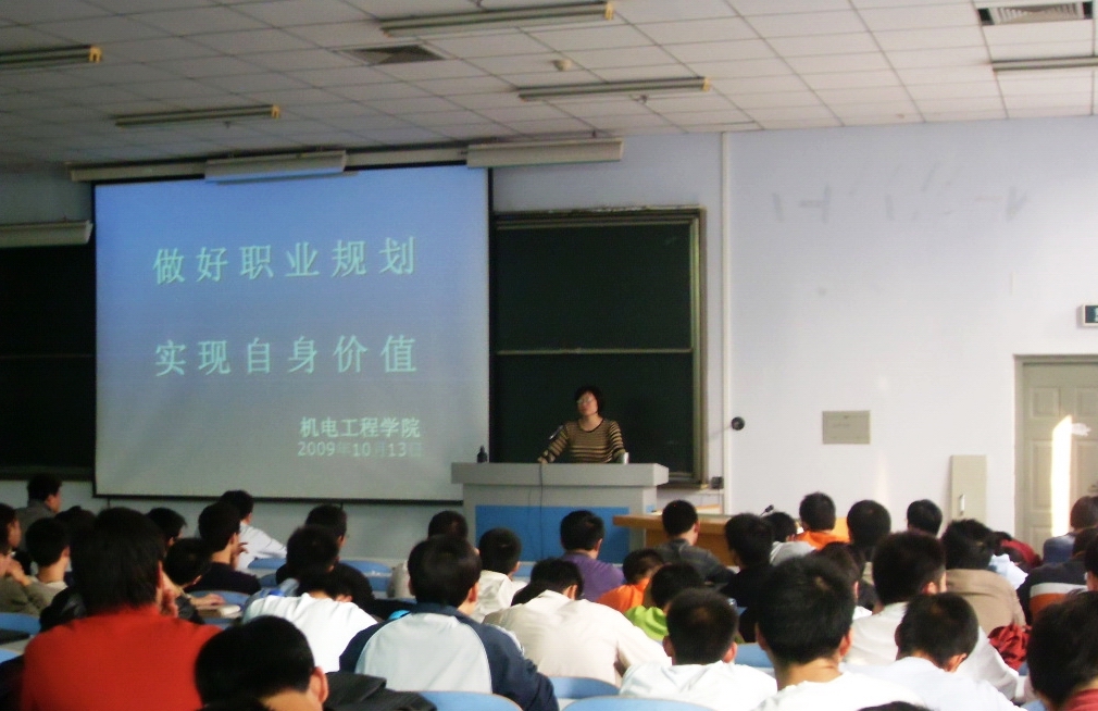 10月13日下午14:30,机电工程学院在教三楼303教室召开主题为“做好职业规划,实现自身价值”的职业生涯指导会,2010届全体毕业生及毕业班辅导员老师参加了此次职业生涯指导会,会议由机电工程学院党总支副书记邵建敏主讲。