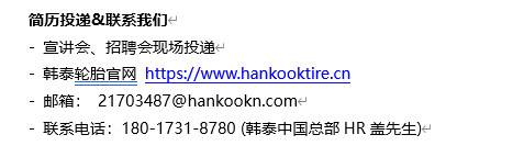 招聘单位:上海韩泰轮胎销售有限公司
